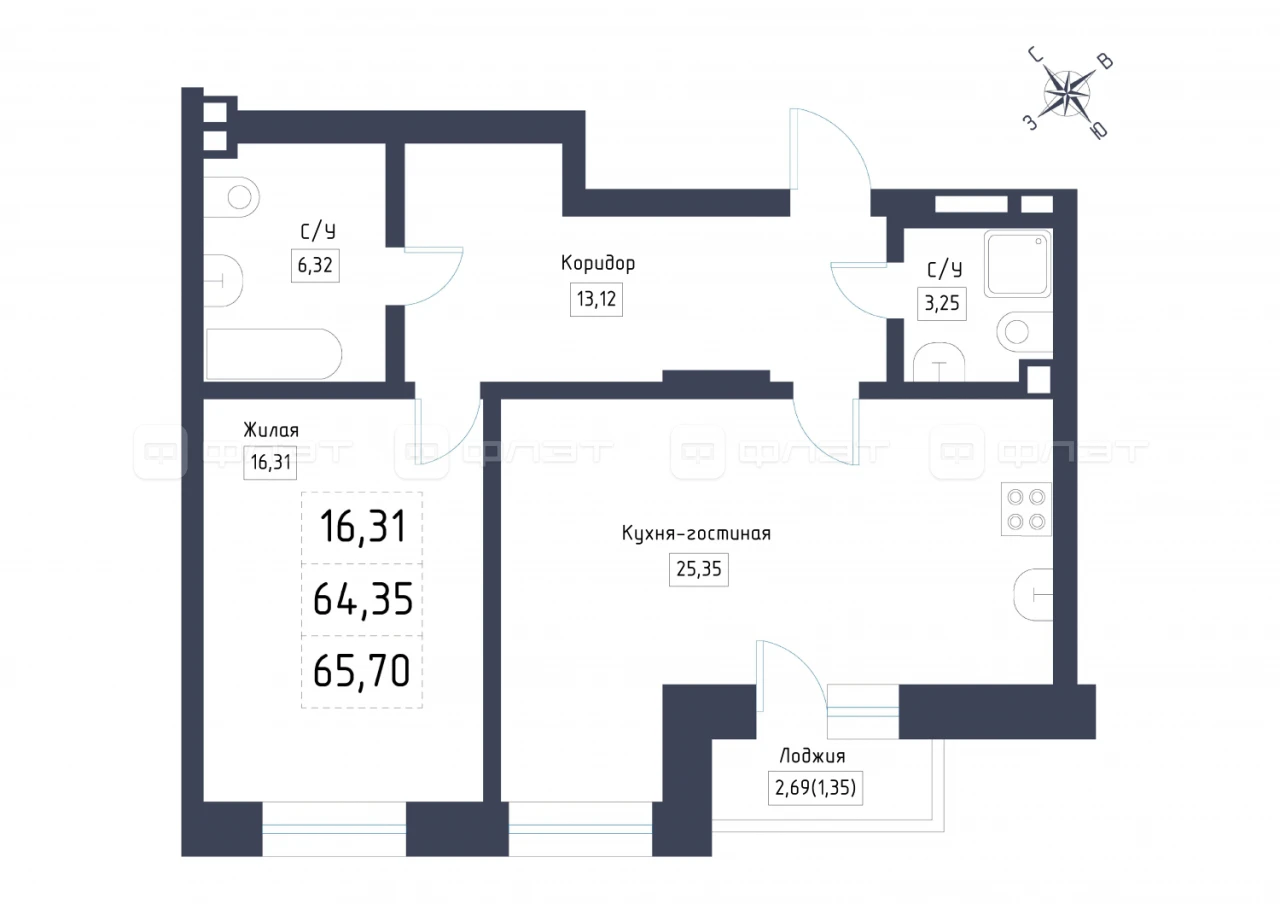 - 65.7/16.31/25.35 м²
