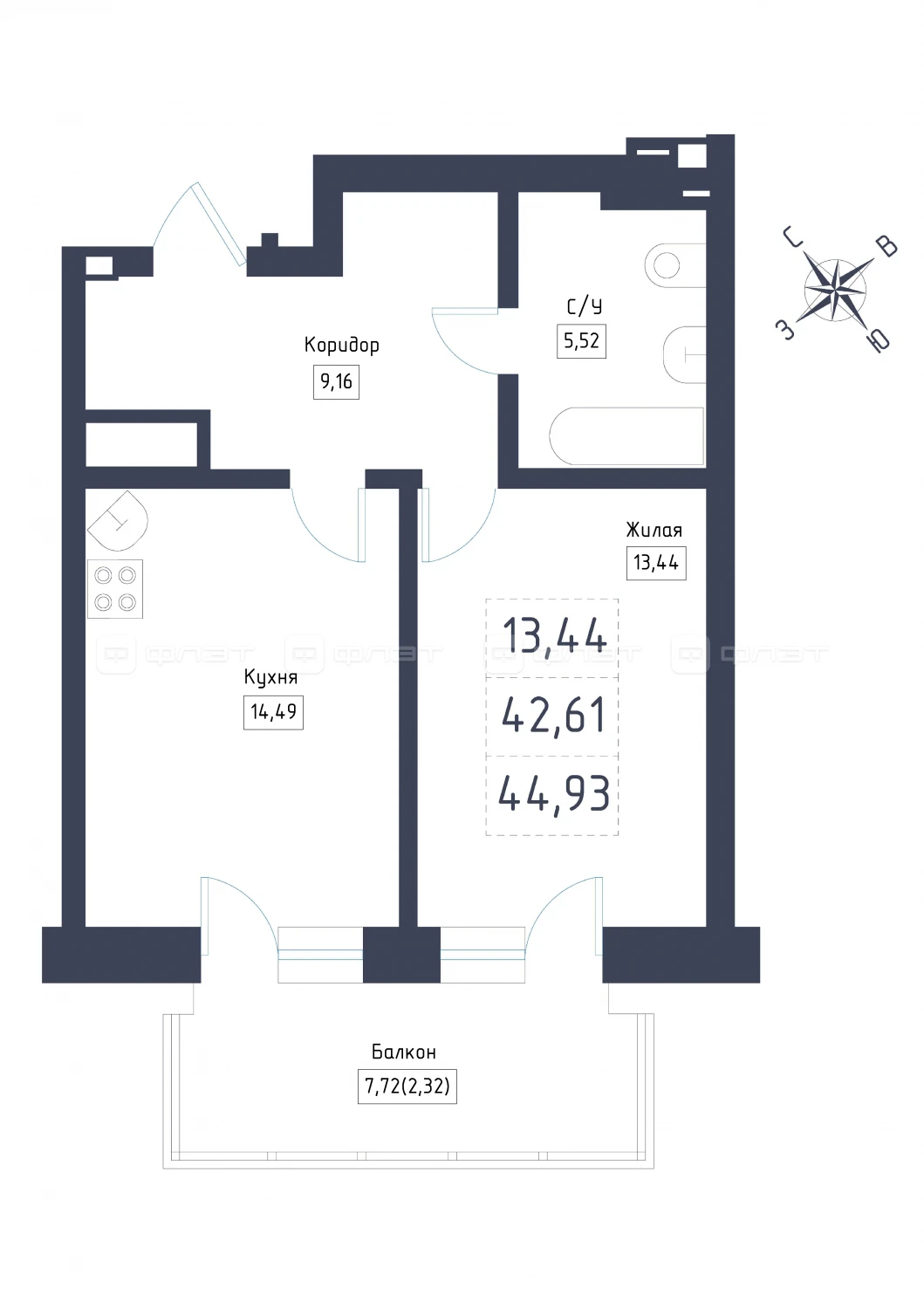 - 44.93/13.44/14.49 м²